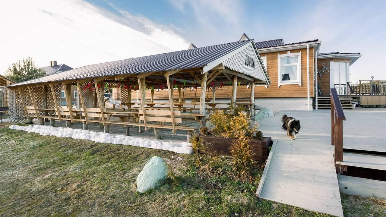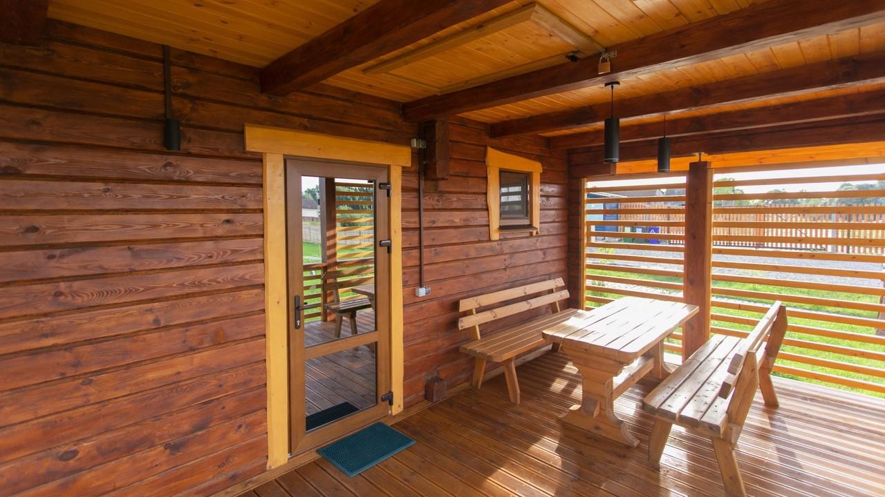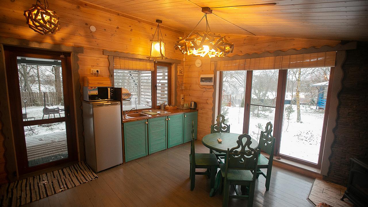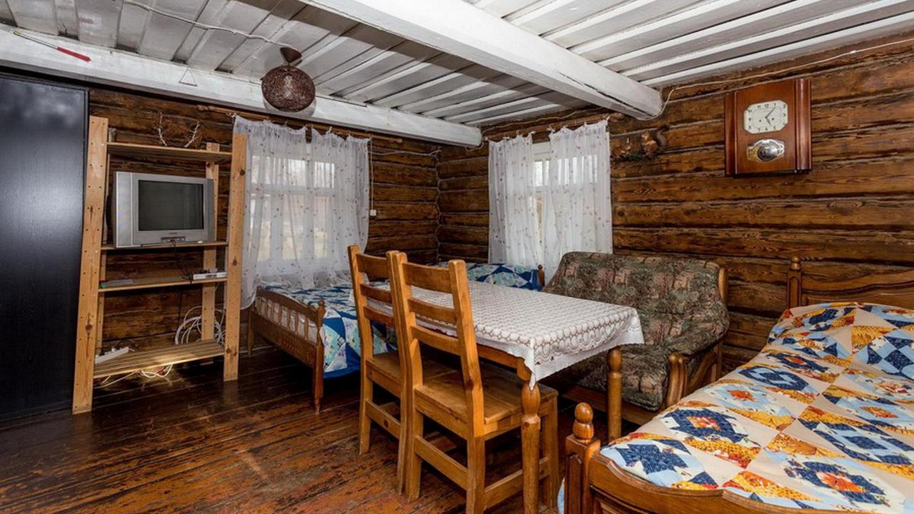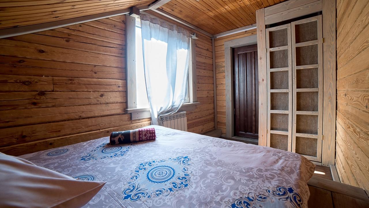 Гостей заселяют в три домика, самый большой из которых вмещает 6 человек. Стоимость проживания в нем составляет 578 рублей/сутки на человека. Судя по информации на сайте, баня входит в стоимость.