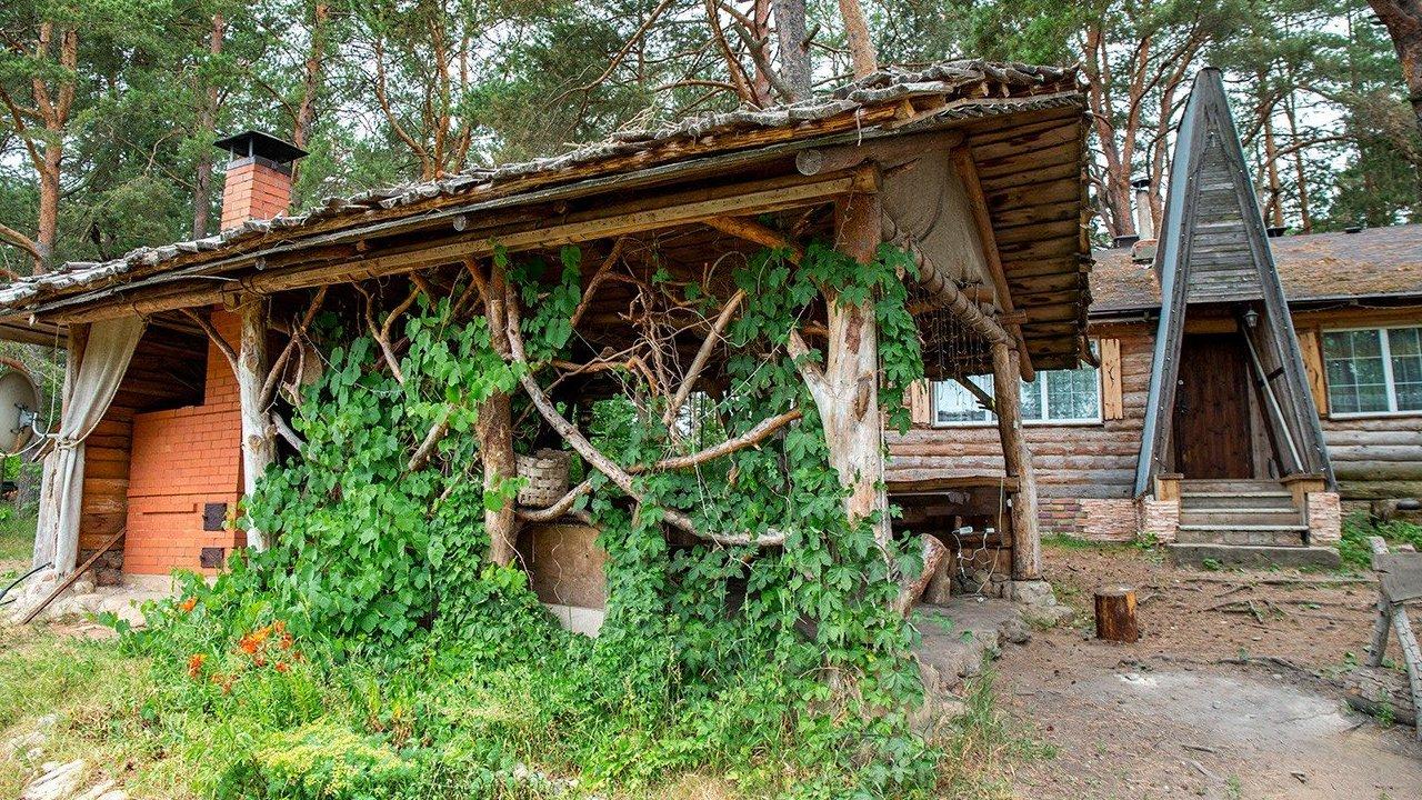 Территория усадьбы красивая и самобытная: дома укрыты вековыми соснами, прямо в воду уходят деревянные причалы, есть собственный песчаный пляж.