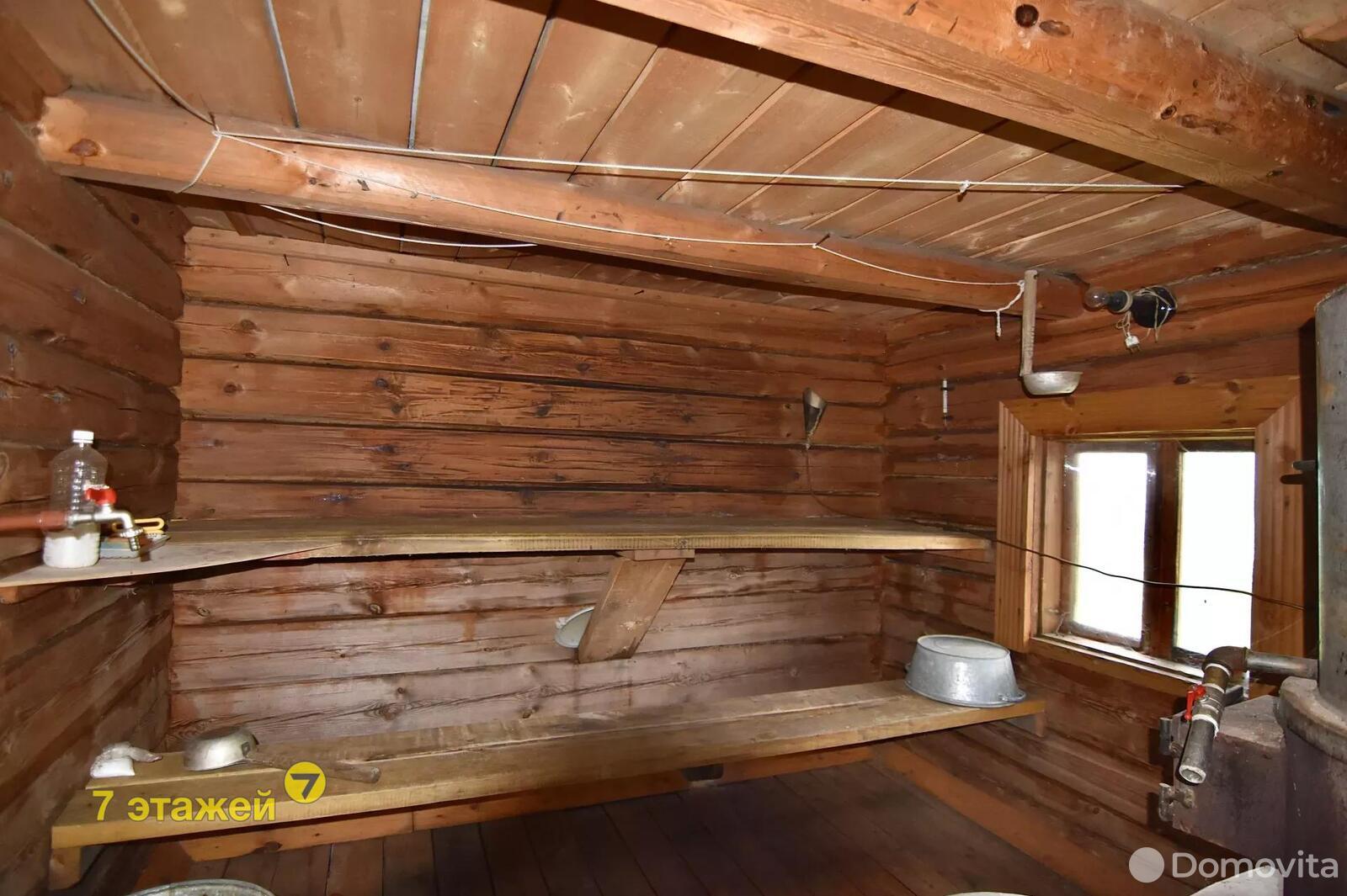 Также продают и двухуровневый дом из сруба в 22 километрах от Минска по логойскому направлению. Дом облицован вагонкой. Построен в 1994 году с общей площадью 58,8 квадратного метра. Внутри печь и подведена сезонная вода, которую подогревает бойлер. Участок ровный, 4,5 сотки. На территории есть веранда, 2 теплицы, санузел, гараж и баня.