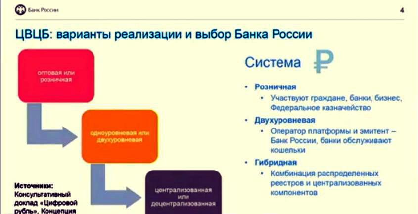 С технологической точки зрения, система может быть децентрализованной либо централизованной. Это зависит от того, каким образом выстроена ее архитектура: это архитектура, близкая к биткоину, то есть распределенный реестр, либо это реестр, управляемый непосредственно регулятором. Нужно сказать, что Банк России выбрал вариант построения гибридной системы. Подчеркну два важных момента.