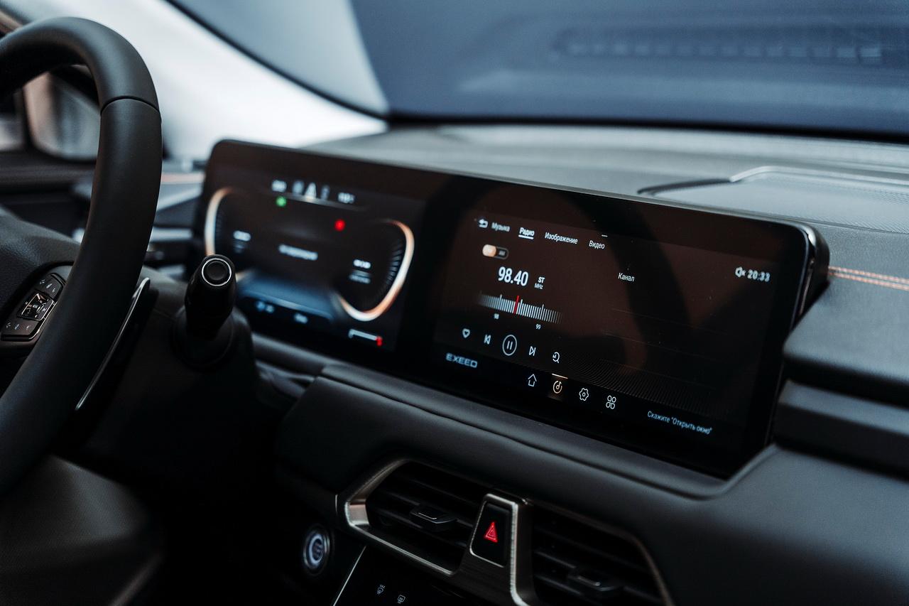 В части начинки интерьера самым компактным из EXEED тоже есть чем блеснуть. Среди характерных для большинства премиальных кроссоверов опций – цифровая приборная панель с двумя экранами 12,3’’, полный набор обогревов стекол, сидений, руля и зеркал, атмосферная подсветка салона, кожаная отделка сидений, обилие мягкого декора в интерьере, двухзонный климат-контроль, мультируль, электрорегулировки сидений, подлокотники спереди и сзади, аудиосистема премиум-класса, беспроводная зарядка и масса usb-разъемов и розеток.