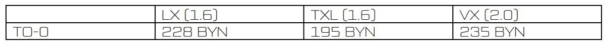 Стоимость первого ТО-0 в белорусских рублях с НДС на текущий момент составляет: