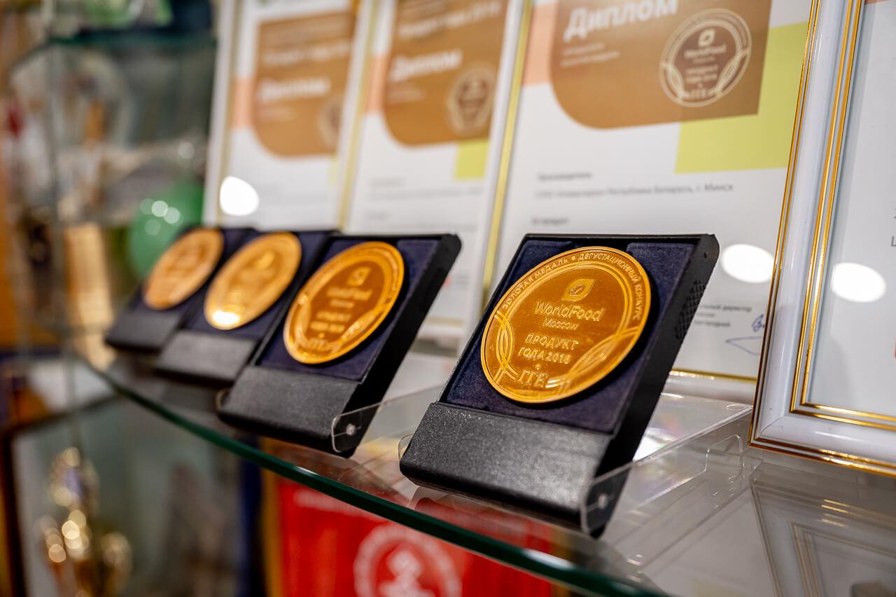- Золотая медаль международной выставки «Продэкспо 2022» – подарочный набор конфет «Бельгийский трюфель», шоколад «Президент» молочный и шоколад «Беловежская пуща» молочный с черничным пюре;