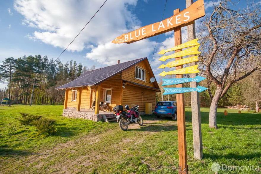 Дом возле заказника и экологической тропы «Голубые озера» за $35 в сутки. Здесь находится сразу 15 озер с чистой водой среди сосновых лесов, но с разработанными туристическими маршрутами. В домике есть вся бытовая техника, санузел, и спутниковое ТВ, хотя вы вряд ли будете смотреть телевизор посреди такой природы. Рядом с домом большая территория, беседка на опушке леса, мангал, дрова. Дом большой и заселиться может до 10 человек, так что лучше всего он подойдет для коллективного отдыха.